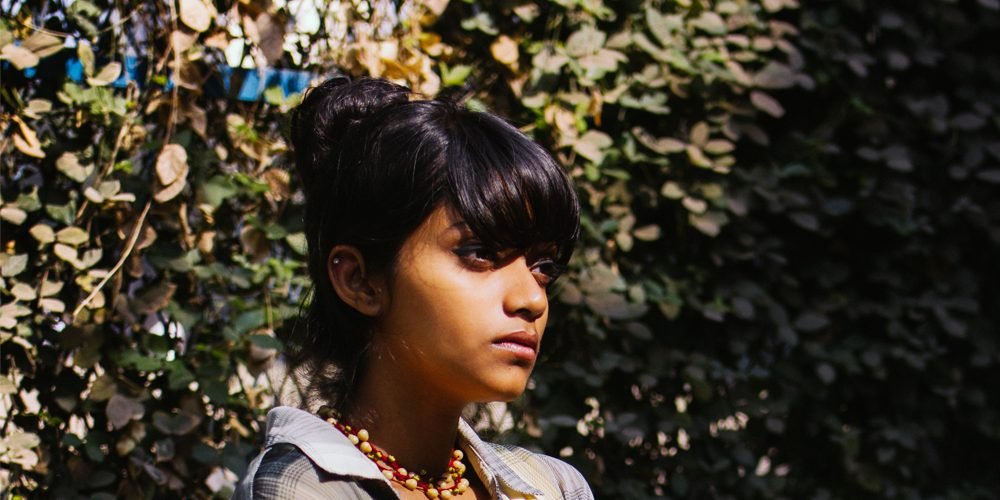 Triparna is wearing a multi coloured, sombre, long, wrap-a-round skirt. The look, however, was altered a little from the usual long skirt. I styled the look by having her wear the skirt high-waisted to give her torso a more slender look. And, the bright yellow tank top accentuates her torso even further. Finally completing the look with a plaid over-sized shirt, ending with a quaint look. The choker without earrings completes the balance. And those brown tied ups get the show walking.
