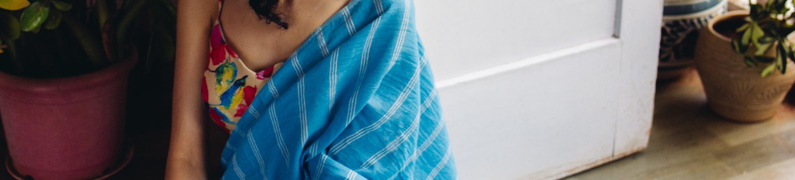 The colourful floral blouse is also by Suta. Along with their beautifully weaved sarees they make such trendy blouses, some of which can also be worn as crop tops. Not only that, they also ethically produce gorgeous lehengas, kurtas & Scarfs!